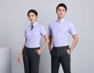 襯衫定制 時尚襯衫男女士夏季 淺藍(lán)色短袖襯衫